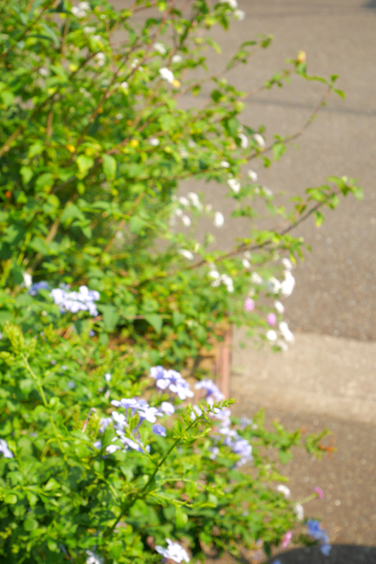 (これは夏に撮影したプチガーデンのルリマツリですが、先日も少し咲いていました)